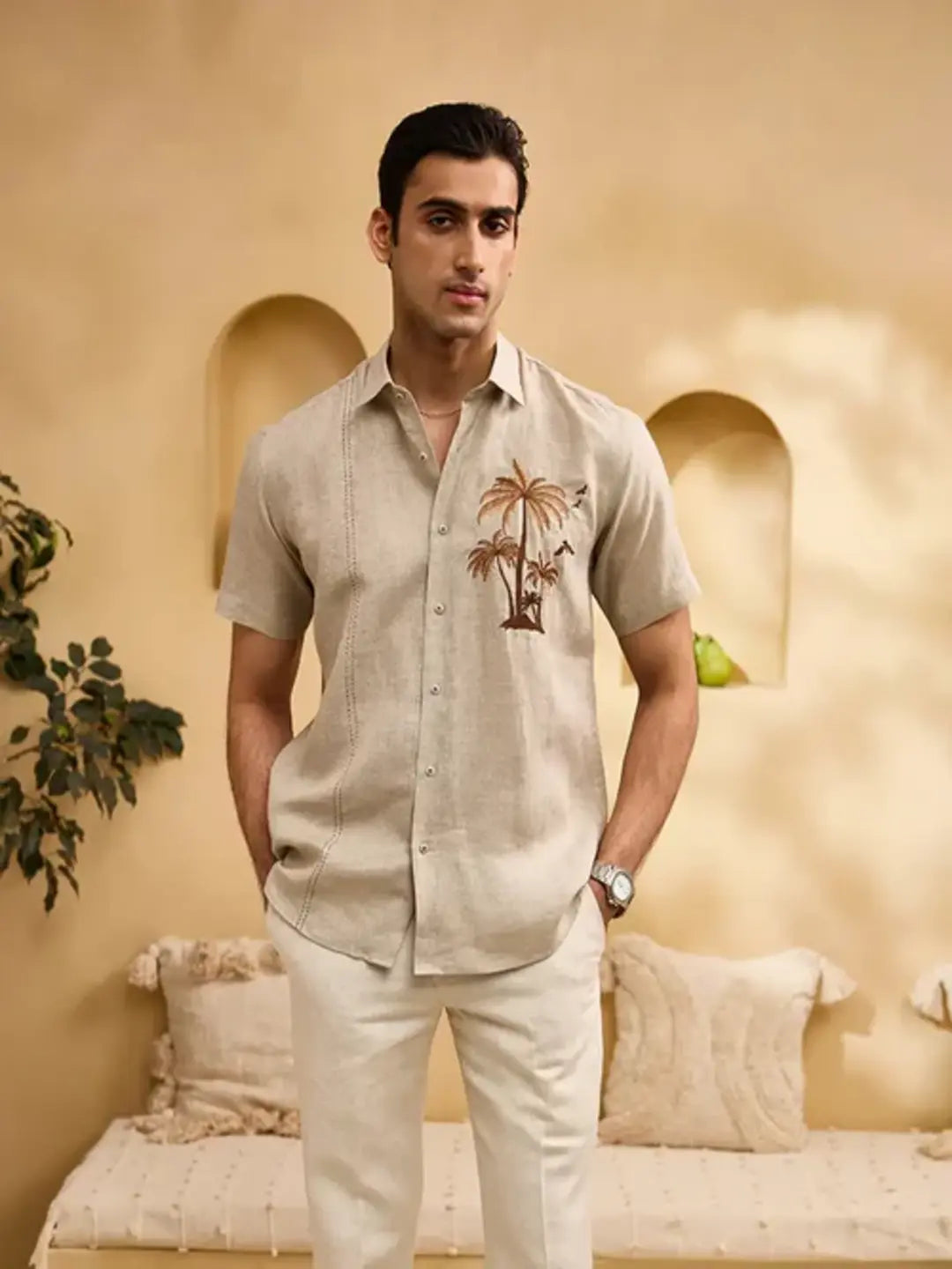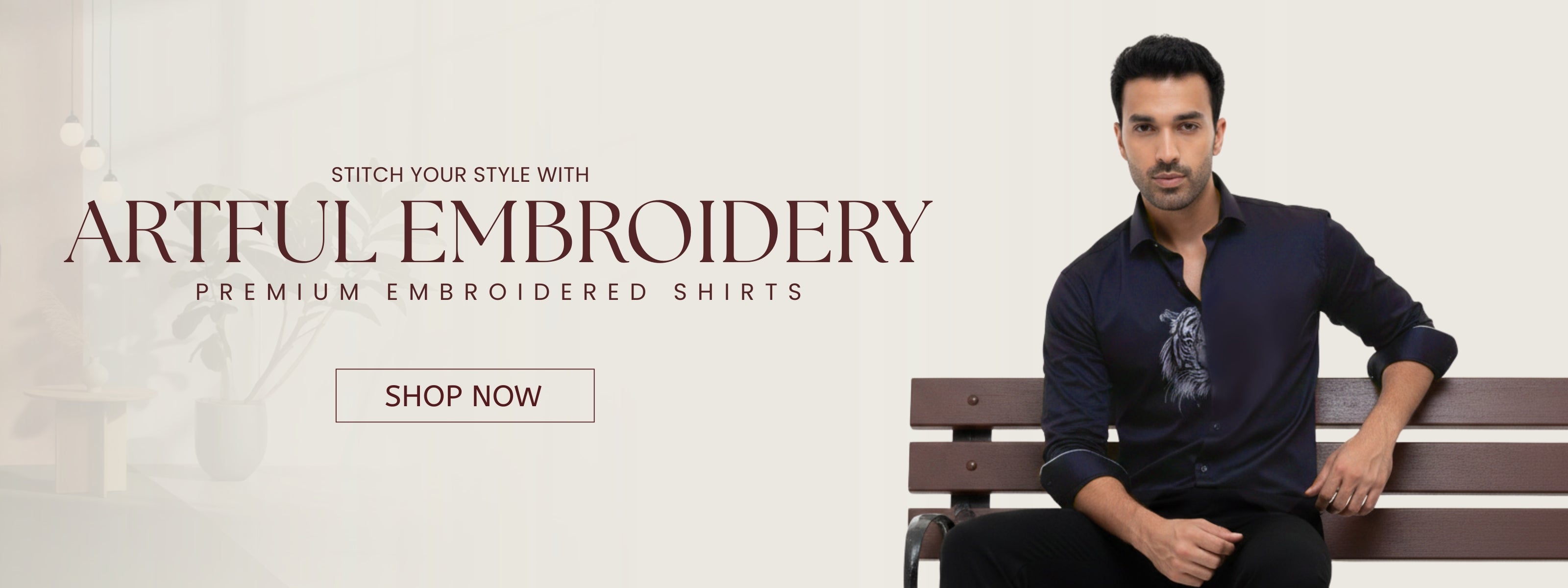 Hand-finished by master karigars, these shirts showcase delicate threadwork inspired by traditional Indian techniques. Every stitch tells a story of artisanal heritage and contemporary refinement.