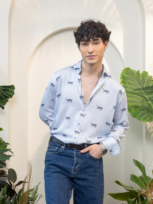 The intricate tiger motif embroidery adds a touch of untamed sophistication, making it a statement piece for the modern gentleman. The cutaway collar and slim fit create a contemporary and refined look, while the premium cotton fabric ensures all-day comfort.