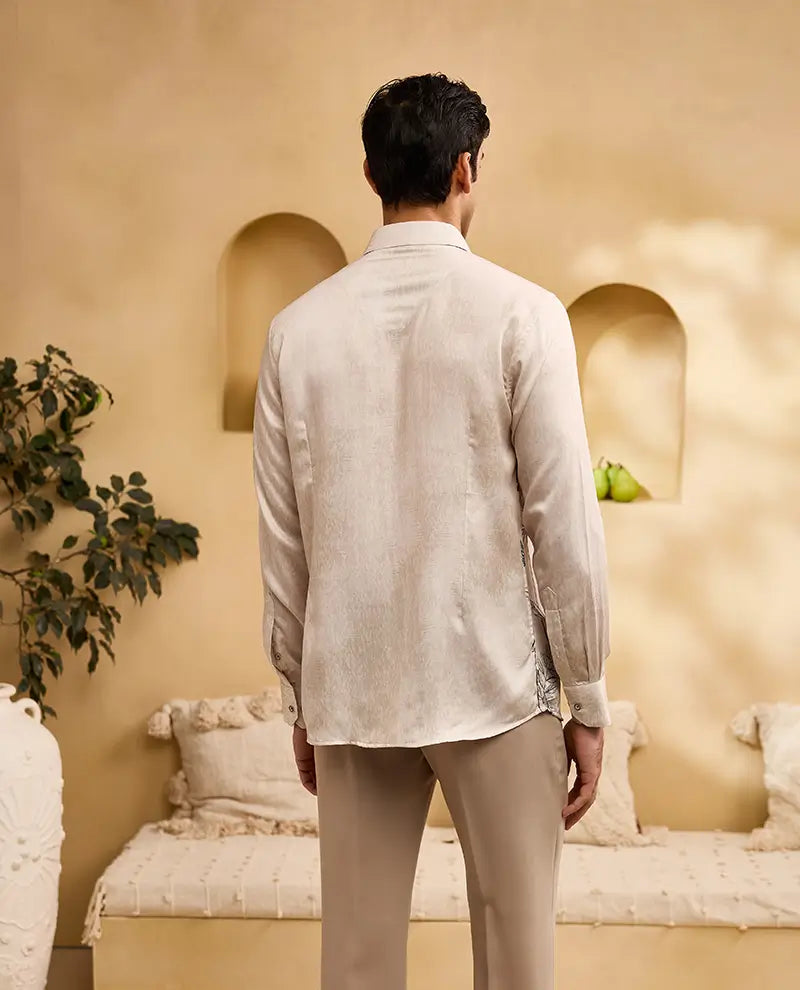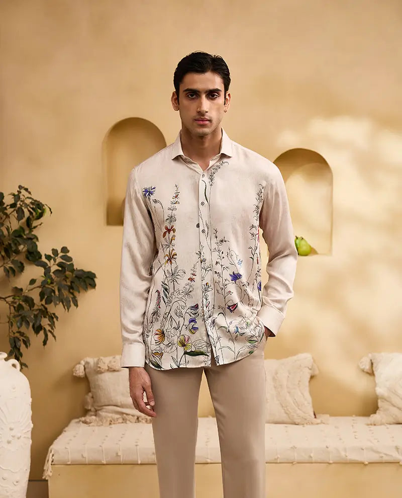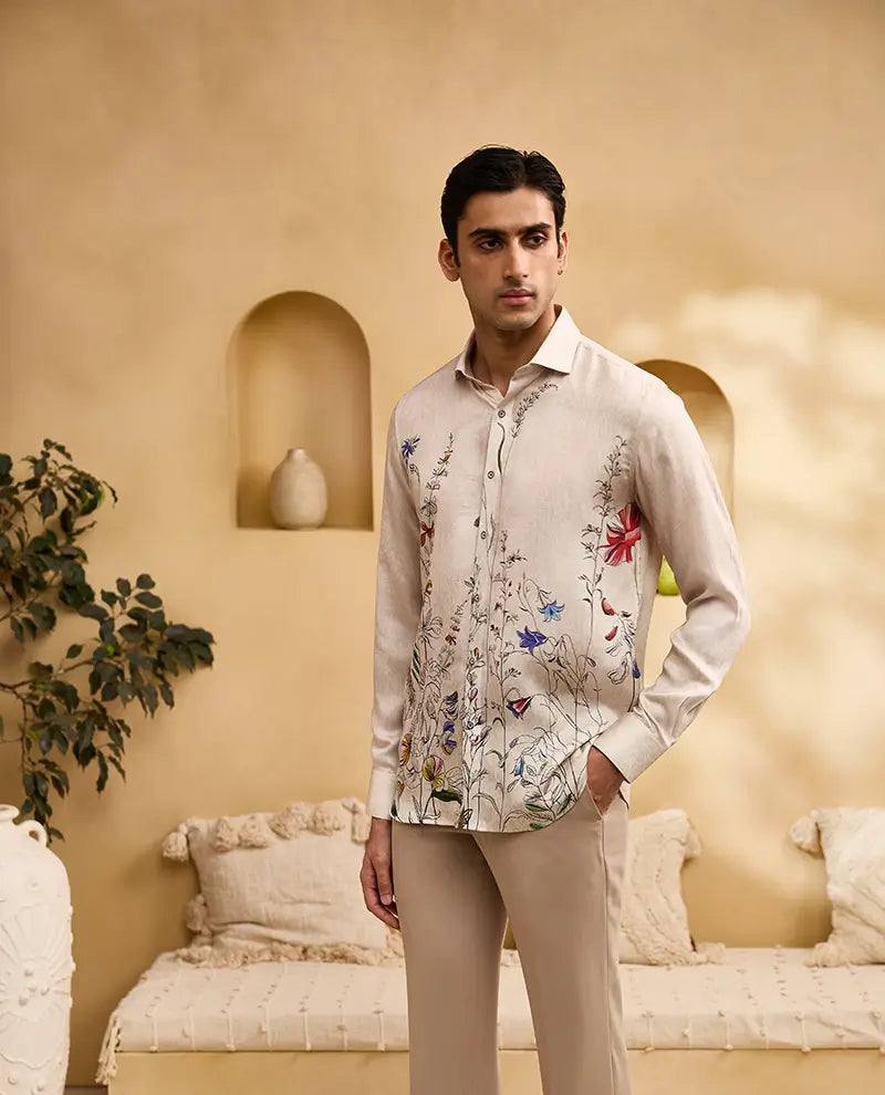 Introduce a touch of understated elegance to your wardrobe with the Albino Lifestyle Beige Floral Slim Fit Shirt. This full-sleeve shirt, crafted from a premium cotton tencel blend, delivers exceptional comfort and a refined silhouette. The subtle floral print adds a sophisticated, yet relaxed vibe, making it perfect for upscale parties, stylish club nights, or any occasion where you want to project a polished look. The modern cutaway collar enhances the shirt's contemporary appeal, while the slim fit ensures a sleek and flattering fit. Albino Lifestyle designs men's shirts for those who appreciate quality and style. This beige floral shirt offers a versatile and sophisticated option for your party and club attire, blending classic design with modern comfort. Experience the premium feel and subtle charm of this meticulously crafted shirt.