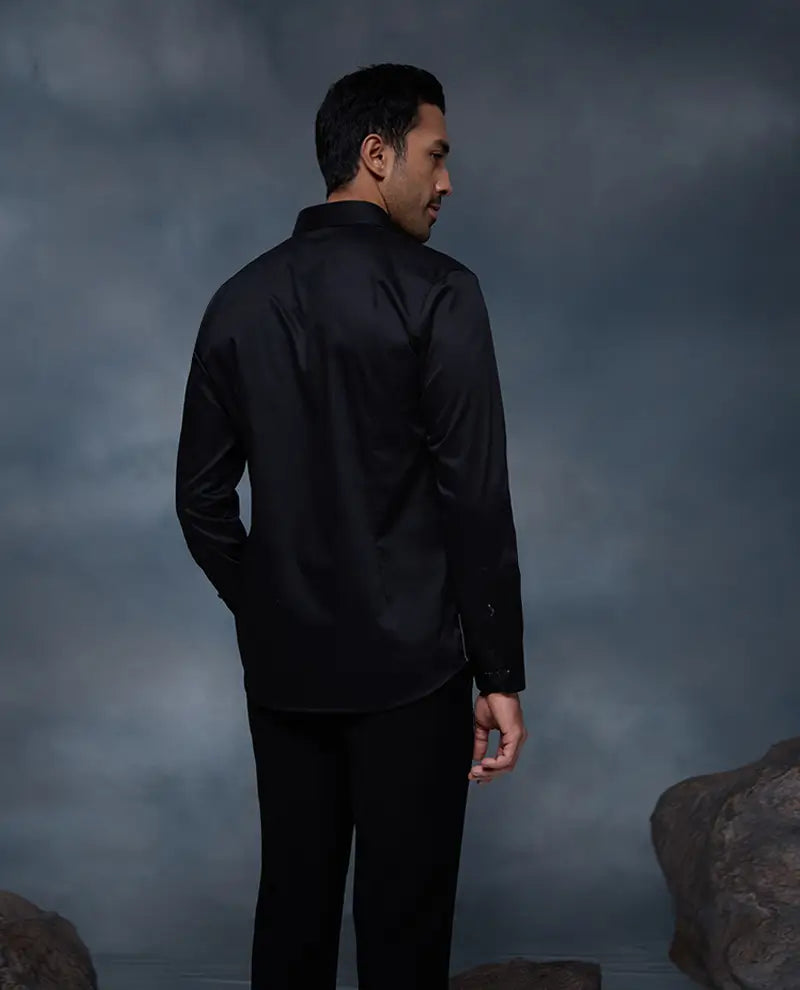 Black Tiger Motif Embroidered Premium Cotton Slim Fit Shirt