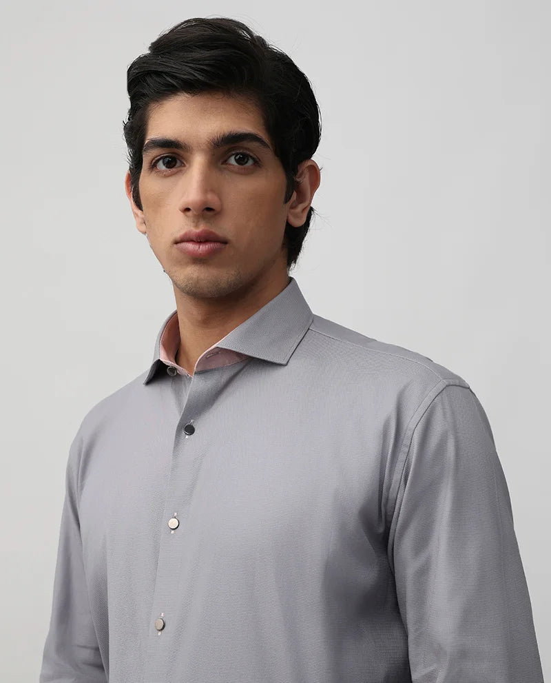 LIGHT GREY PLAIN COTTON SLIM FIT SHIRT