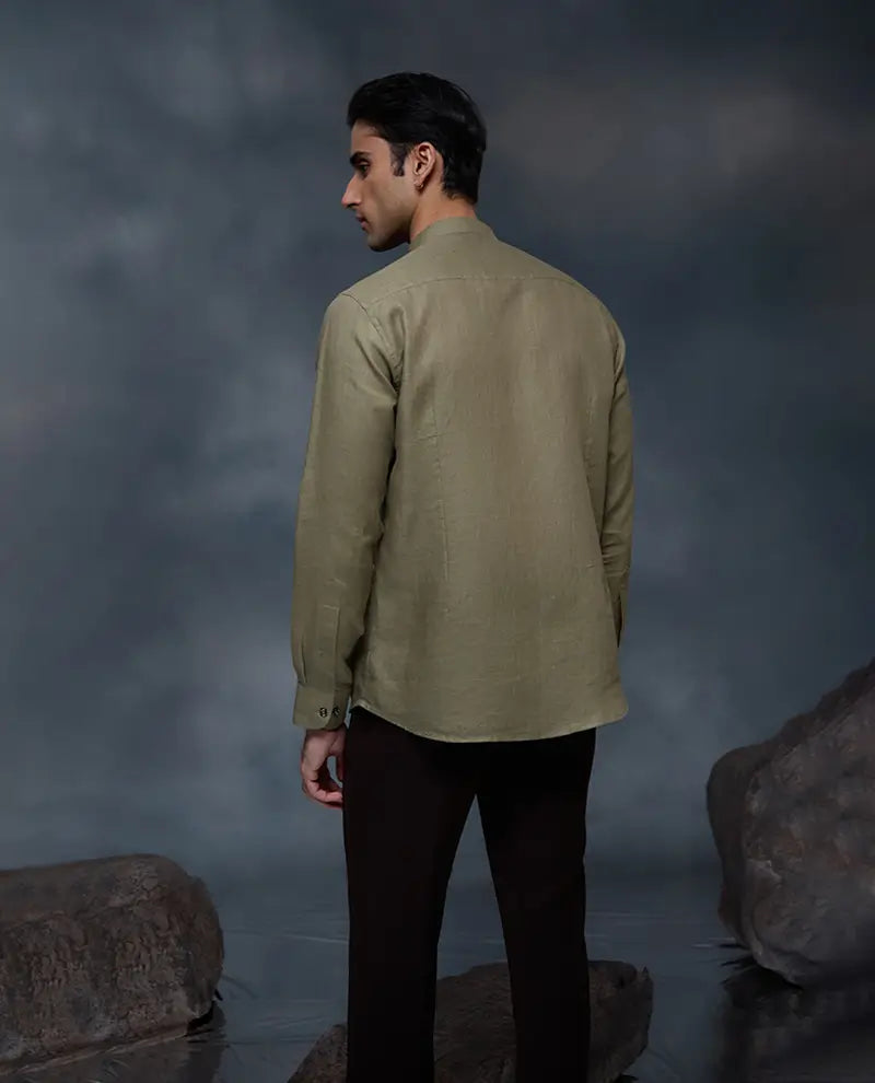Exude a blend of tropical charm and refined style with the Albino Lifestyle Olive Green Palm Tree Embroidered Linen Slim Fit Shirt. Crafted from premium linen, this shirt offers a lightweight, breathable feel and a modern slim fit. The subtle palm tree placement embroidery adds a touch of understated elegance, perfect for both casual and semi-formal occasions. The classic Chinese collar elevates the shirt's sophistication, while the slim fit ensures a contemporary and flattering silhouette. Experience the premium quality of Albino Lifestyle's linen shirts, designed for the discerning individual who appreciates both comfort and distinctive design. This olive green embroidered shirt is a perfect addition to your stylish wardrobe.