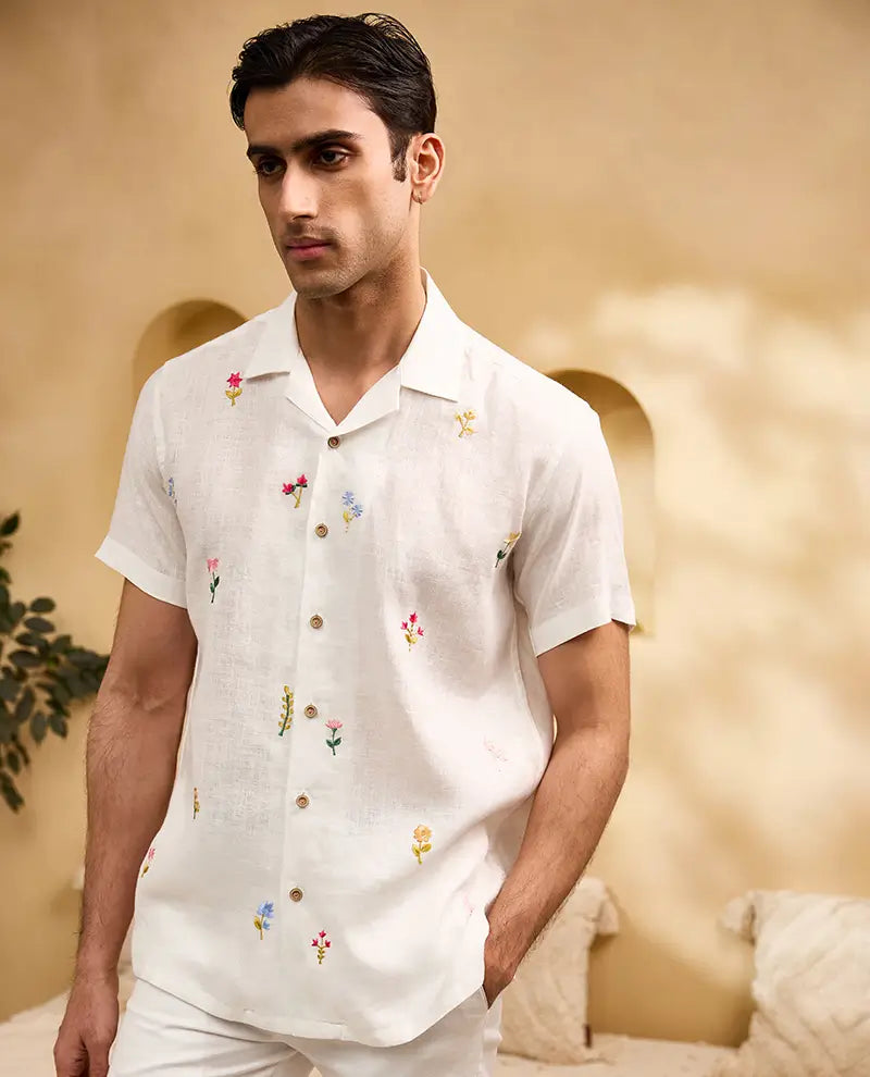 Experience understated elegance with the Albino Lifestyle White Linen Shirt with Coloured Minimal Floral Embroidery. Crafted from premium linen, this shirt offers a lightweight, breathable feel and a relaxed fit. The delicate colored floral embroidery adds a touch of understated sophistication, making it a versatile choice for both casual and semi-formal occasions. The classic Cuban collar and half sleeves create a timeless and comfortable look, perfect for warm weather. Indulge in the premium quality of Albino Lifestyle's linen shirts, designed for the discerning individual who appreciates both comfort and distinctive design. This white embroidered shirt is a testament to refined style and effortless elegance.